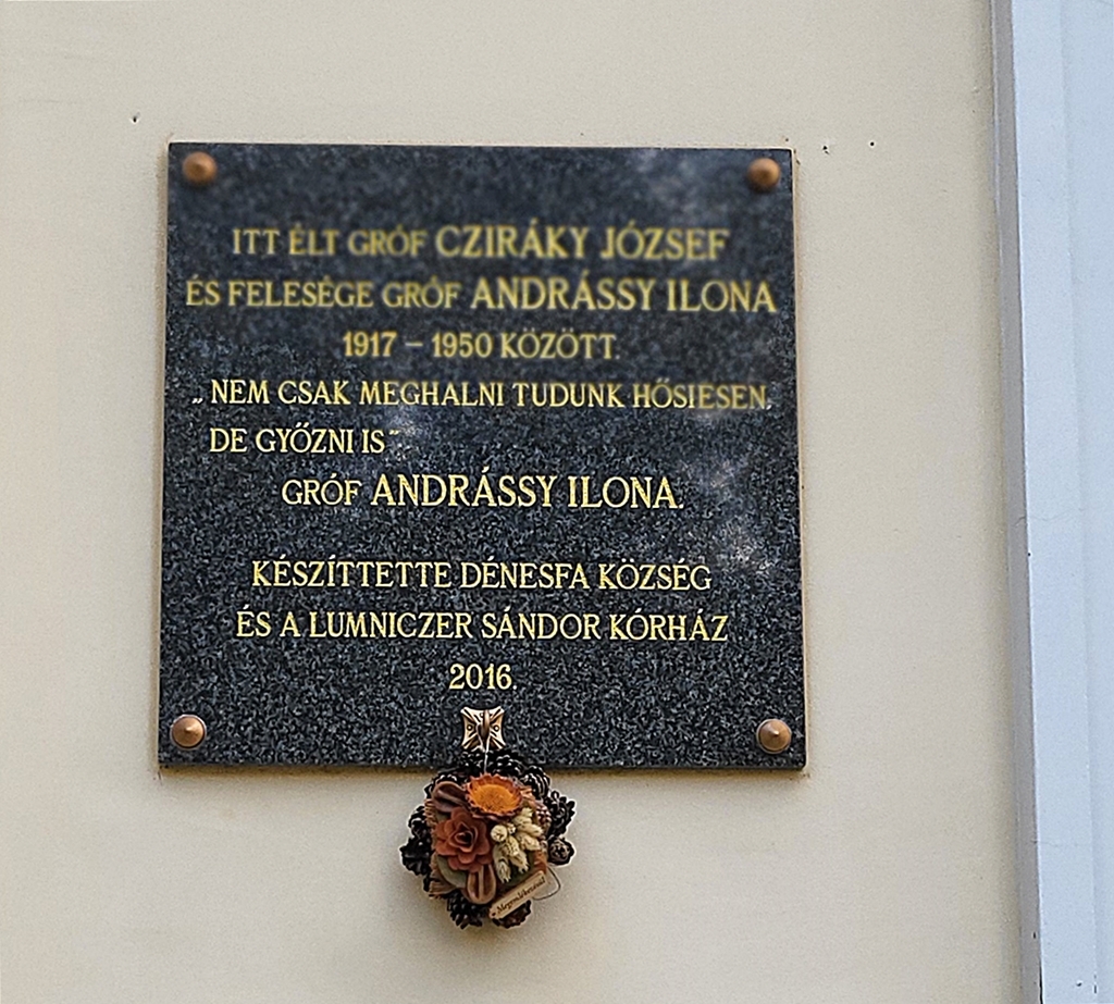 A kastély falán két tábla őrzi az emlékezetet. Az egyiken gróf Cziráky József és felesége, gróf Andrássy Ilona neve áll, alatta a mondat: „Nem csak meghalni tudunk hősiesen, de győzni is.” A másik tábla Boldog IV. Károly király látogatásáról mesél, aki 1921 őszén járt itt. Ezek a kőbe vésett szavak nemcsak történelmet őriznek, hanem azt a hitet is, hogy minden kor hoz hősöket, még ha csendeseket is.